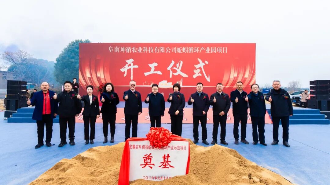 1月18日,阜南县蚯蚓生态循环产业示范项目盛大开工奠基仪式隆重举行。作为地龙产业链企业与国家高新技术企业,地龙力生物工程(天津)有限公司倾力助力阜南坤循农业科技有限公司,以核心技术与全产业链资源为支撑,携手为皖北生态循环农业发展注入强劲动能。此次开工的产业园项目总投资达10.5亿元,是阜南县聚焦现代循环农业、落实乡村振兴战略的重点标杆工程,备受行业关注与地方重视。